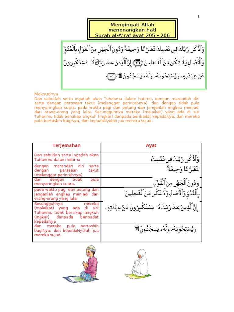 Surah Al A Raf Ayat 205 206 Mengingati Allah Menenangkan Hati Pdf